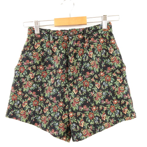 オリーブデオリーブ OLIVE des OLIVE キュロット ショートパンツ ツイード 花柄 黒 緑 M *A155 レディース