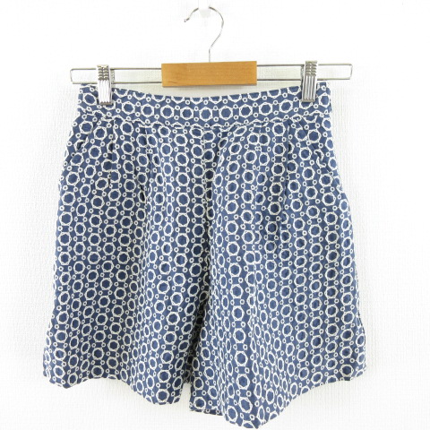 レストローズ L'EST ROSE キュロット ショートパンツ 総柄 紺 白 2 *A180 レディース