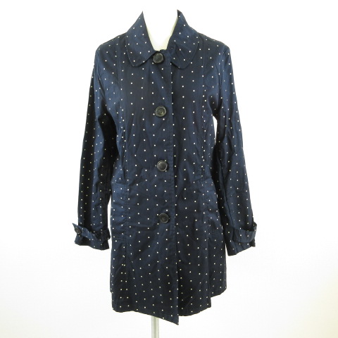 URBAN NOW スプリングコート ステンカラー 長袖 ドット 紺 M *T708 レディース