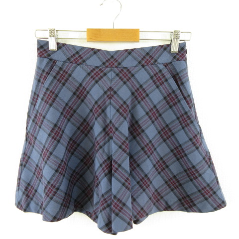 ナチュラルビューティーベーシック NATURAL BEAUTY BASIC キュロット フレアショートパンツ チェック 青 赤 M *A969 レディース