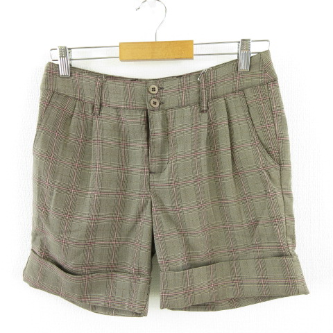 未使用品 エスジェイフェリー S.J.FERRY ショートパンツ グレンチェック ストレッチ 茶 黒 40 *A569 レディース