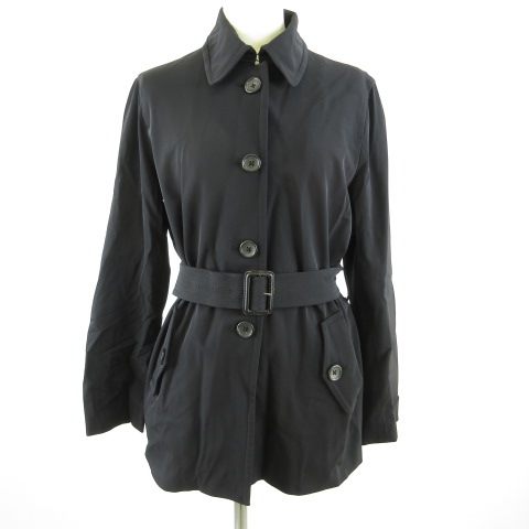 バナナリパブリック BANANA REPUBLIC ステンカラーコート 長袖 ハーフ丈 ストレッチ 黒 S *T469 レディース