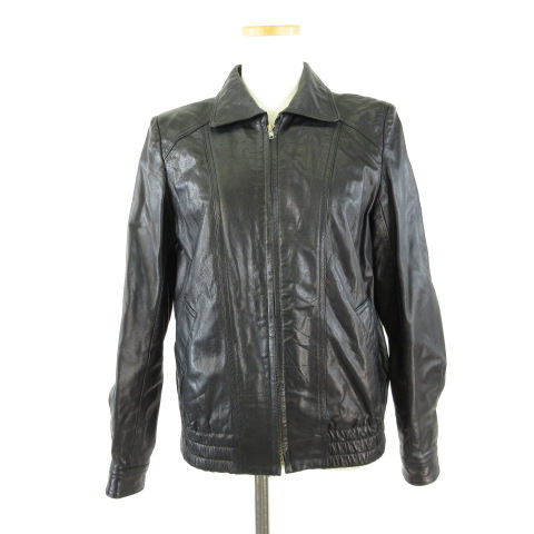 LA-NAP レザージャケット 長袖 カウナッパ ジップアップ 黒 11 *T220 レディース