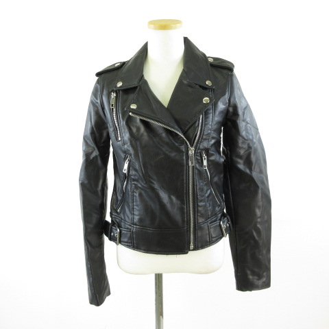 ザラ ZARA ライダースジャケット 長袖 フェイクレザー 黒 XS *T820 レディース