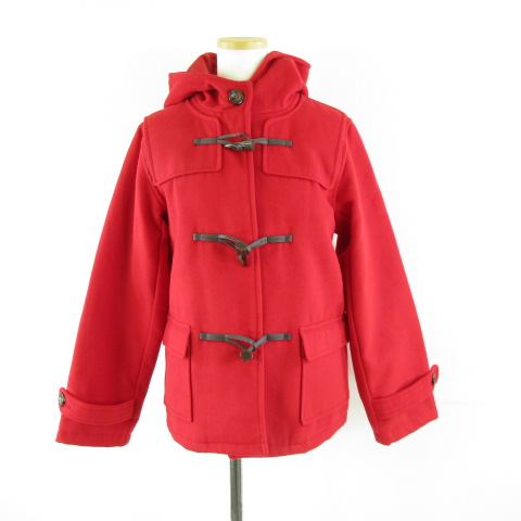 ダッフルフーディコート ショート丈 長袖 赤 M *A420 レディース