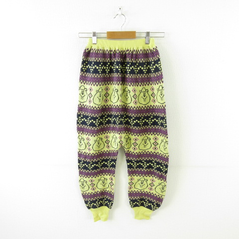 ダブルシー WC ニットサルエルパンツ ロング 総柄 黄 紫 F *A7 レディース
