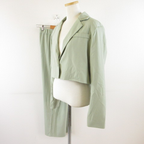 U1iA Miss.I セットアップ テーラードジャケット 長袖 クロップド丈 ロングパンツ 緑 *T5 レディース