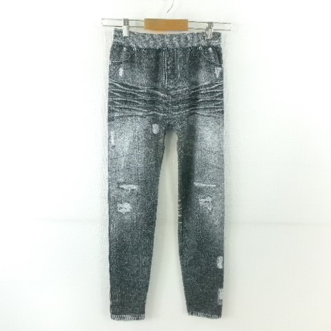 レギパン スキニー ロング プリント ストレッチ 黒 M L *T238 レディース