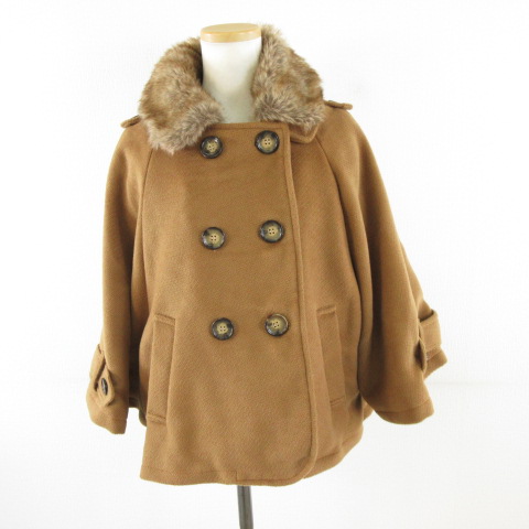 アズノウアズ ピンキー AS KNOW AS PINKY ポンチョ ショートコート 2WAY 長袖 茶 *A255 レディース