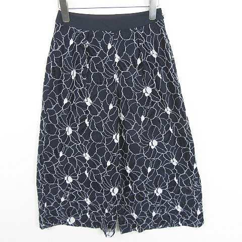 クイーンズコート QUEENS COURT ガウチョ パンツ クロップド パンツ ワイド レーヨン 0 ネイビー レース 花柄 小さいサイズ kz11469 レディース