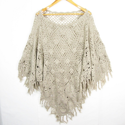 ゴア goa ニット ポンチョ 透かし編み フリンジ F ベージュ kz12778 レディース