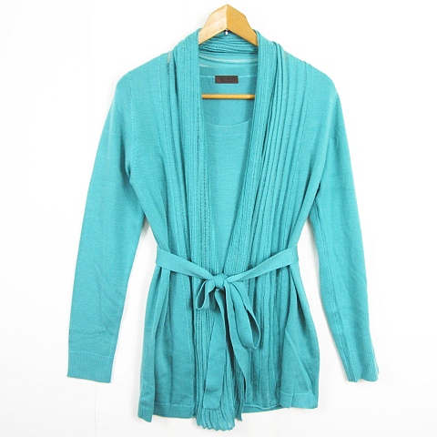 プロフィール PROFILE アンサンブルニット カーディガン 長袖 ミディアム丈 カットソー ベルト付き ストレッチ 38 ターコイズブルー kz1394