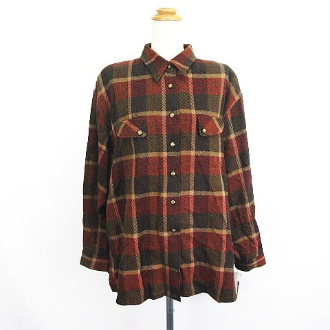 未使用品 L-fine ジャケット カバーオール 長袖 チェック ウール 15R ブラウン系 ※EKM レディース