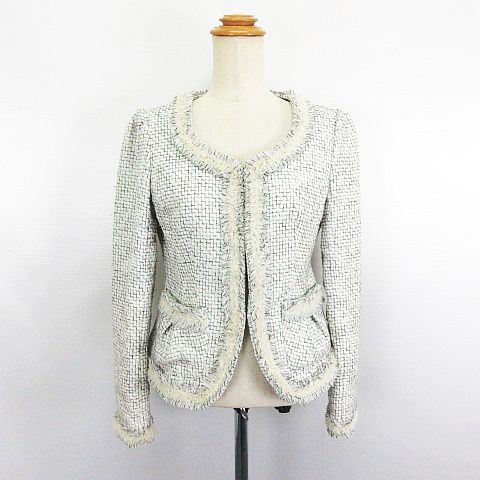オットー OTTO ノーカラージャケット アウター 長袖 ツイード フリンジ チェック 7 アイボリー ※EKM レディース