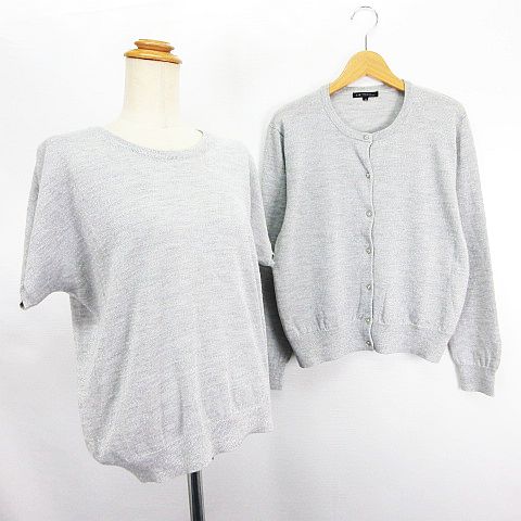 23区 オンワード樫山 ニット アンサンブル カーディガン 長袖 丸首 セーター 半袖 丸首 ラメ ウール混 44 グレー ※EKM レディース