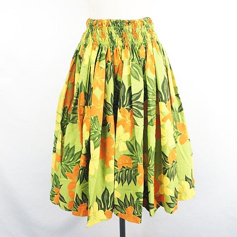 パオンドール Paondor スカート ボトムス ロング丈 ギャザー ハワイアン 花柄 イエローグリーン フラダンス ※EKM レディース