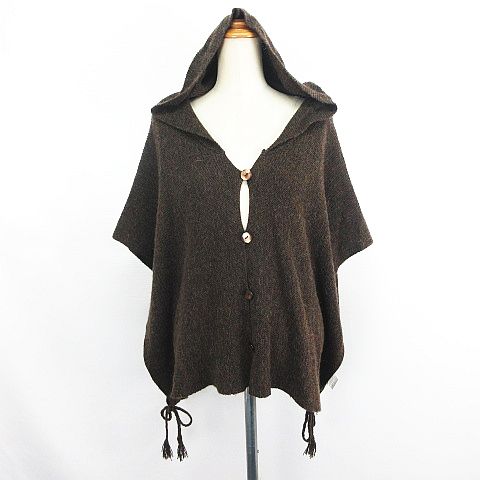 サマンサモスモス SM2 ニット ポンチョ フード アルパカ混 ウール混 M ブラウン ※EKM レディース