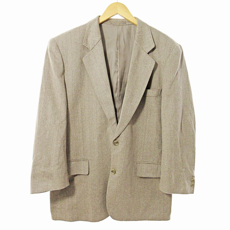クロスヘイヴン CROSS HAVEN カシミヤ テーラードジャケット ブレザー ヘリンボーン L ベージュ 0624 ●ECO メンズ