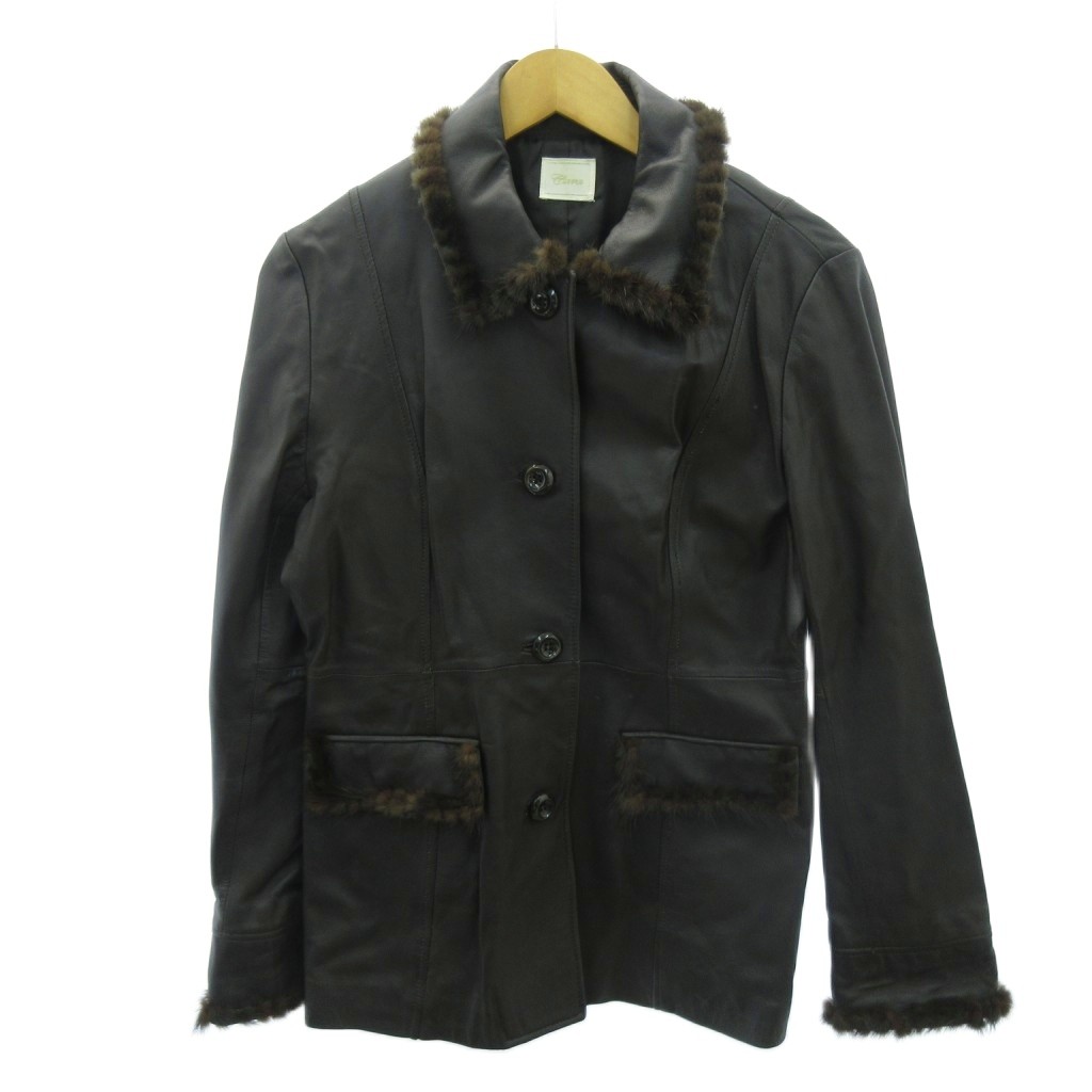カーラ Cara レザーコート ミンクファー ラムレザー ショート丈 茶 ブラウン 1103 レディース