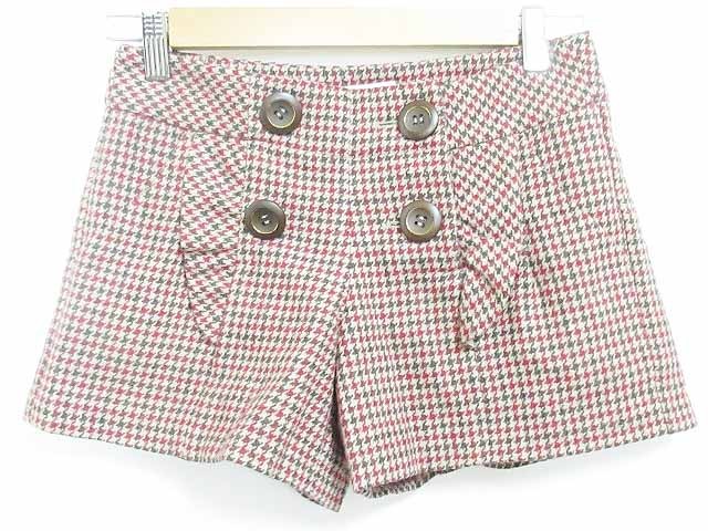 ジルスチュアート JILL STUART ショートパンツ キュロット ウール 千鳥格子 赤 茶 P W57 レディース
