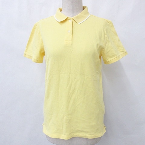 ランズエンド LANDS' END ポロシャツ 半袖 鹿の子 綿 ストレッチ 黄 イエロー M レディース