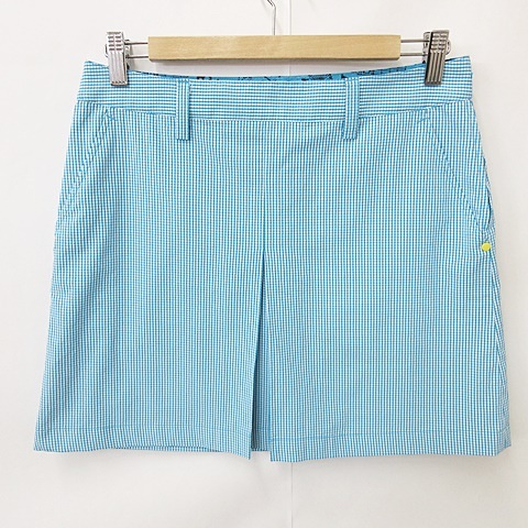 アディダス adidas GOLF ゴルフ テーラーメイド スカート プリーツ チェック ストレッチ 刺繍 速乾 水色 白 ブルー ホワイト M レディース