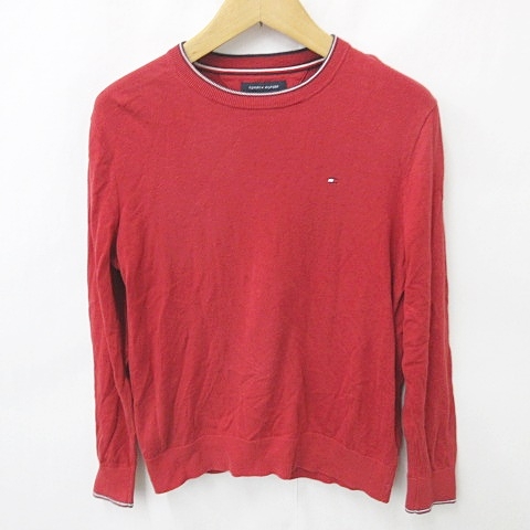トミーヒルフィガー TOMMY HILFIGER セーター ニット 長袖 丸首 ロゴ 綿 シルク 赤 紺 白 レッド ネイビー ホワイト L