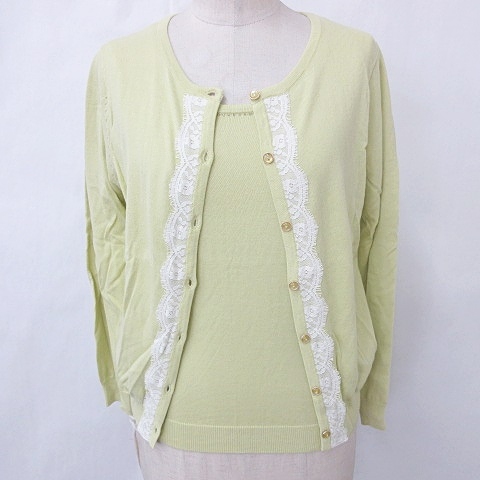 未使用品 エニィスィス エニシス anySiS ニット アンサンブル クルーネック カーディガン 長袖 インナー 半袖 黄 白 2 レディース