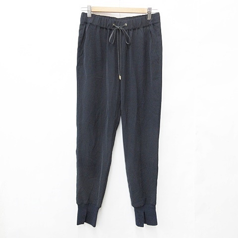ベアトリス BEATRICE パンツ ジョガーパンツ ロング 総ゴム ドロスト リブ スリット 黒 紺 ブラック ネイビー 38 レディース