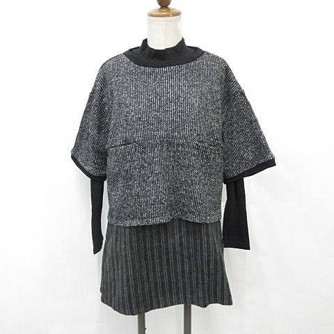 未使用品 APAISER アンサンブル ニット ハイネック ストライプ ブラック グレー M-L レディース