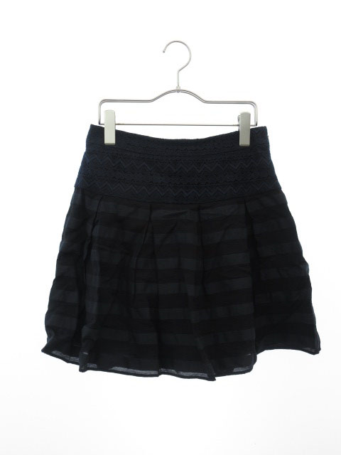 組曲 KUMIKYOKU キュロット パンツ スカート レース ボーダー フレアー ミニ 2 紺 ネイビー ahm レディース【中古】【ベクトル 古着】