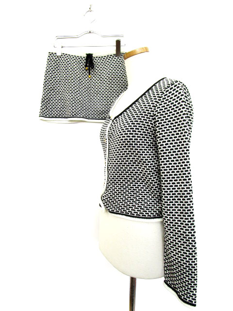 ビーラディエンス BE RADIANCE セットアップ カーディガン スカート ミニ ニット 総柄 黒 ブラック /ka レディース【中古】【ベクトル 古着】