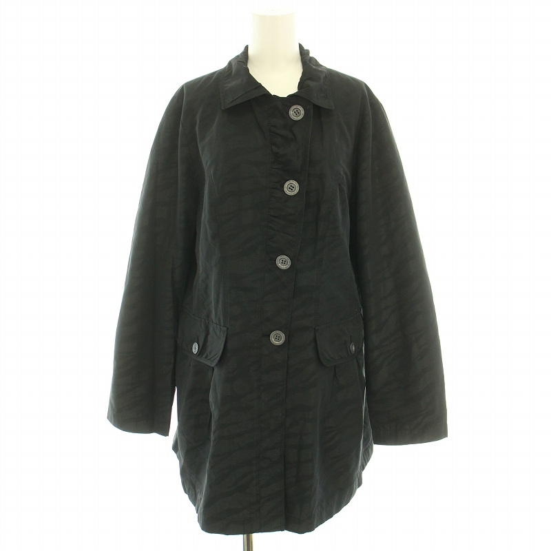 エヴェックス バイ クリツィア EVEX by KRIZIA ステンカラーコート アウター ミドル ゼブラ柄 46 XXL 黒 ブラック /YT レディース