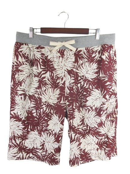 ノーブランド パンツ ハーフ ショート アロハ ゴムウエスト ボタニカル柄 赤茶 白 サイズ3L QQQ メンズ