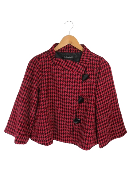 ギャルフィット GALFIT ジャケット ポンチョ コート ショート丈 七分袖 千鳥柄 ピンク ブラック サイズL QQQ レディース