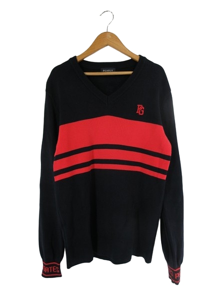パーリーゲイツ PEARLY GATES ニット Vネック 長袖 ボーダー サイズ4 ネイビー レッド 国内正規 QQQ メンズ