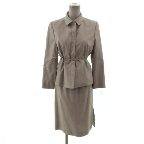 コムサデモード COMME CA DU MODE スーツ スカートスーツ ジャケット ステンカラー リボンベルト スカート ミディ丈 ベージュブラウン M
