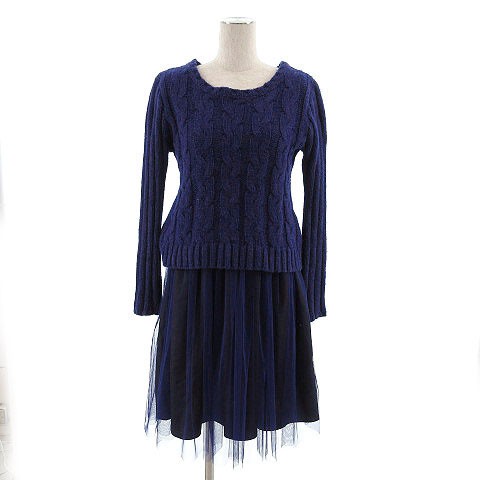 オットー OTTO セットアップ ニット 長袖 ケーブル編み ワンピース ノースリーブ ミディ丈 チュール 切替 ブルー系 M レディース