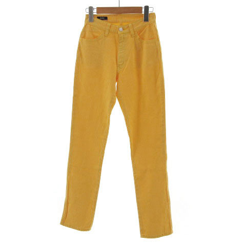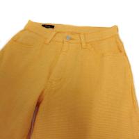 サムシング something パンツ ジーンズ風 スリム ジップフライ バーズアイ柄 イエロー系 黄色系 ホワイト 白 28 レディース
