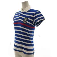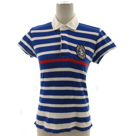 ラルフローレン RALPH LAUREN ポロシャツ 半袖 ボーダー ワッペン ブルー 青 ホワイト 白 L レディース