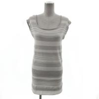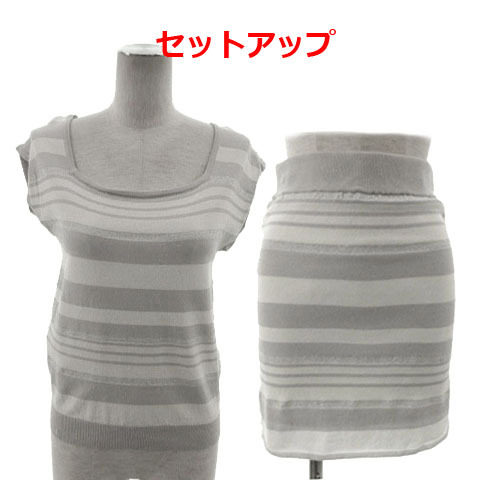 CECIL McBEE セットアップ カットソー スクエアーネック フレンチスリーブ スカート ミディ丈 ボーダー グレー 白 シルバー M