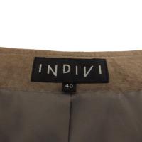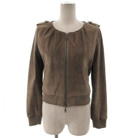 インディヴィ INDIVI ジャケット ノーカラー レザー 豚革 ジップアップ グレージュ 40 レディース
