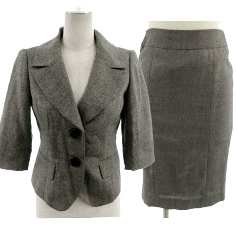 【実寸サイズ】ジャケット 肩幅:35.5cm ジャケット 身幅:42cm ジャケット 袖丈:38cm ジャケット 着丈:47cm スカート ウエスト:56cm スカート丈:55.5cm ※実寸サイズに関してはこの商品の出品者の主観で判断しておりますので、カタログや正規のサイズとは多少異なる場合があります。 ※商品によってはどうしても若干の誤差が発生してしまいます。 1〜2cmの誤差は予めご了承ください。