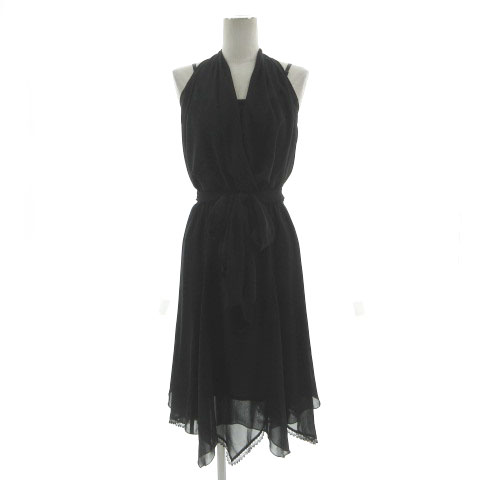 ロートレアモン LAUTREAMONT BLACK ワンピース フォーマル ドレス ホルターネック レース切替え ミディ丈 リボンベルト 日本製 黒 2
