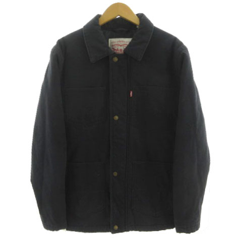 リーバイス Levi's カバーオール ジャケット ステンカラー ジップアップ 中綿入り コットン ブラック系 黒系 S メンズ
