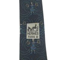 エルメス HERMES シルクネクタイ ナロータイ ダンシング 7049TA フランス製 シルク100% 総柄 ネイビー系 紺系 青系 ベージ