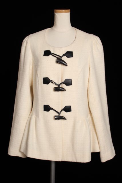 ニーナミュウ nina mew コート ダッフル トグル ノーカラー 長袖 ペプラム ウール アンゴラ混 F ホワイト アイボリー 133-7004 /TK レディ