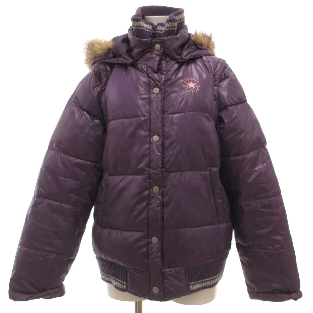 コンバース CONVERSE 中綿ジャケット L 紫 パープル 長袖 ファー付きフード リブニット襟 /SC ■ECF001 レディース