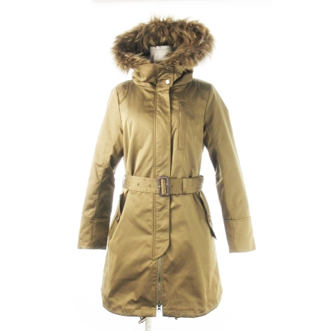 バーニーズニューヨーク BARNEYS NEW YORK モッズコート ミドル丈 ダブルジップ 比翼 フーディ ベルト付き ラクーンファー付き 38 M 茶