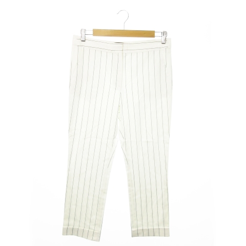 レコパン LES COPAINS パンツ クロップド サブリナ カプリ ストレッチ ストライプ 総柄 40 L 白 ホワイト /AO21 ■GY19 レディース